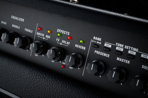We wzmacniaczu można jednocześnie konfigurować nawet 15 różnych efektów, co pozwala zabrać na estradę w pełni przygotowane brzmienia. Po wybraniu dźwięku za pomocą przycisków panelu, po prostu zapisz go w wybranej pamięci za pomocą szybkiego przytrzymania przycisku. Dostępny jest zapis ośmiu ustawień (dwa banki po cztery), które można łatwo wybrać z prawej strony panelu. Dla ułatwionej pracy podczas koncertu podłącz zewnętrzne przełączniki nożne lub kontroler GA-FC.