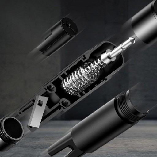 - Sprężynowy młotek bezpieczeństwa firmy Baseus zapewnia szybkie i skuteczne wybicie szyby w przypadku awaryjnym. Wystarczy mocno docisnąć końcówkę młotka do szyby, aby ją natychmiastowo rozwalić. Jest to szczególnie przydatne w sytuacjach, gdy samochód znajduje się pod wodą, a opór wody uniemożliwia otwarcie drzwi. Dzięki temu narzędziu kierowca i pasażerowie mogą szybko opuścić pojazd, zwiększając swoją szansę na przetrwanie.