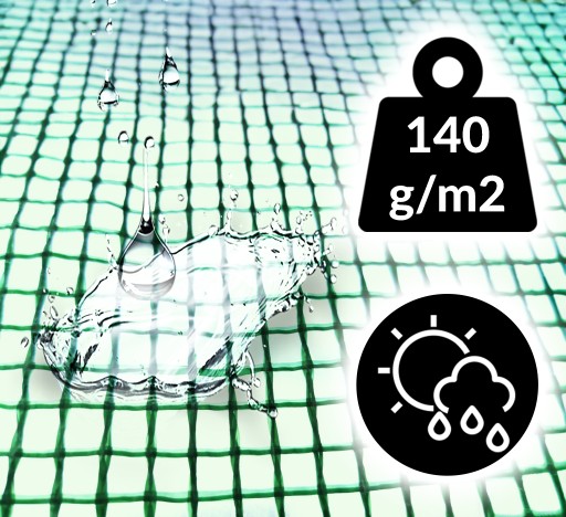 ✅ Folia PE z filtrem UV=4 o gramaturze 140g/m2 z wtopioną siatką wzmacniającą w kolorze zielonym.