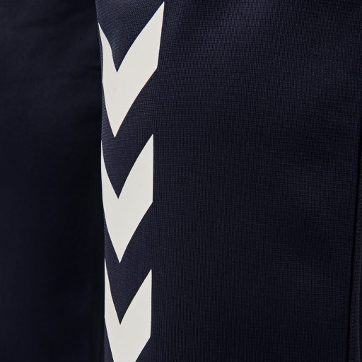 Poliestrowy dres hmlPROMO POLY SUIT nadaje się zarówno na co dzień jak i na trening. Spodnie w tym zestawie posiadają dwie boczne kieszenie i elastyczny pas ze sznurkiem, który zapewnia odpowiednie dopasowanie. Bluza również posiada dwie boczne kieszenie oraz podwyższony kołnierz.