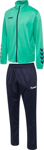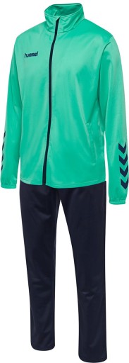 Poliestrowy dres hmlPROMO POLY SUIT nadaje się zarówno na co dzień jak i na trening. Spodnie w tym zestawie posiadają dwie boczne kieszenie i elastyczny pas ze sznurkiem, który zapewnia odpowiednie dopasowanie. Bluza również posiada dwie boczne kieszenie oraz podwyższony kołnierz.