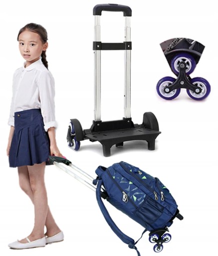 - Nowoczesny mechanizm do wchodzenia po schodach lub jazdy po nierównym terenie, składający się z 3 obrotowych kół na każdej ze stron stelaża, umożliwi pokonanie wszystkich przeszkód na drodze do szkoły jak: krawędzie ulic, wysokie chodniki, schody.