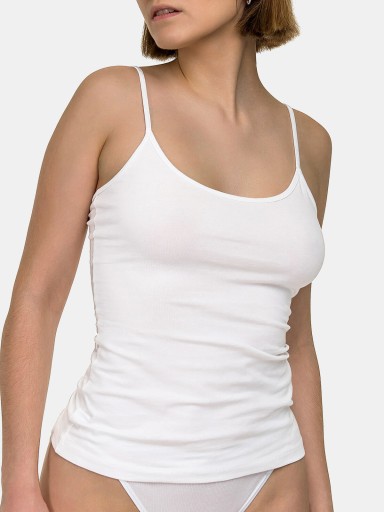BLUZKA TOP KOSZULKA DAMSKA GŁADKA RAMIĄCZKA ELASTYCZNA BAWEŁNIANA BIAŁA L