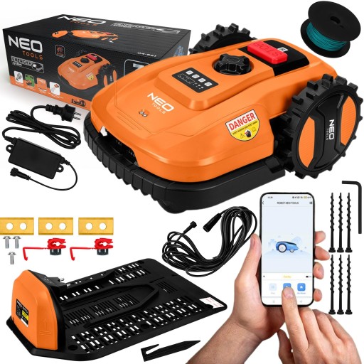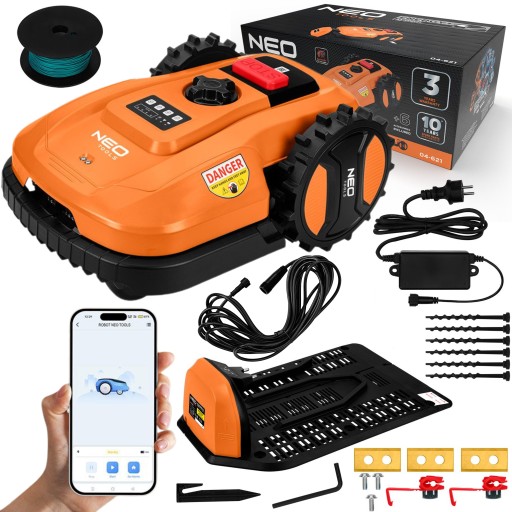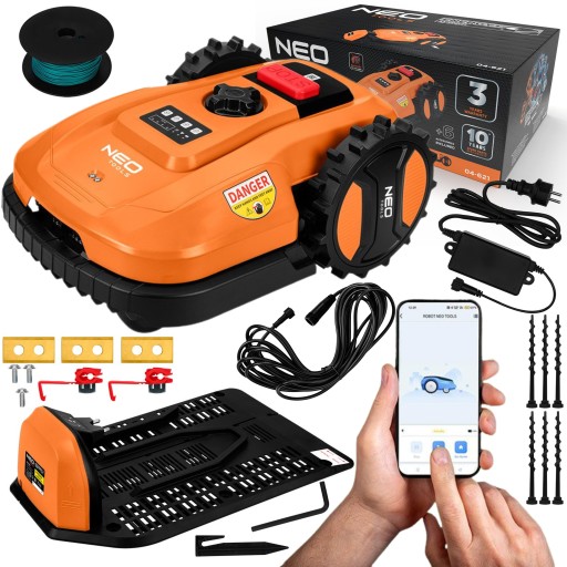 Robot koszący E+ 04-621 marki NEO TOOLS to nowoczesne urządzenie funkcjonujące w systemie akumulatorowym Energy+ do trawników do powierzchni 600㎡. Charakteryzuje się napięciem zasilania 18 V DC, maksymalną mocą znamionową silnika tnącego 50 W oraz maksymalną mocą znamionową silnika samojezdnego 20 W. Robot koszący NEO TOOLS posiada szerokość koszenia 180 mm oraz możliwość regulacji wysokości koszenia w zakresie 20 – 60 mm. Prędkość obrotowa urządzenia wynosi 3100 RPM. Robot oferowany jest w zestawie ze stacją dokująco-ładującą, zasilaczem oraz przedłużaczem, 100 m kablem do wyznaczenia obszaru roboczego, 100 kołkami do mocowania kabla, 6 kołkami do mocowania stacji dokującej, 3 ostrzami tnącymi, 2 łącznikami kabla oraz kluczem sześciokątnym. Charakteryzuje się stopniem ochrony IPX4 dla stacji ładującej, stopniem ochrony IPX5 dla robota, stopniem ochrony IP 65 dla adaptera ładującego, III klasą ochronności dla robota oraz II klasą ochronności dla stacji ładującej. Robot koszący NEO TOOLS z bezszczotkowym silnikiem tnącym jest kompatybilny z bateriami o pojemności 2,4 i 6 Ah. Średni czas ładowania dla akumulatora 2 Ah wynosi 45 minut, a pracy – 65 minut. To urządzenie polecane dla osób poszukujących nowoczesnych rozwiązań w pielęgnacji ogrodu.