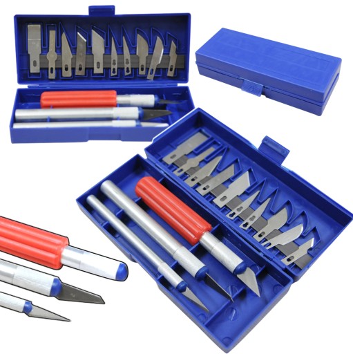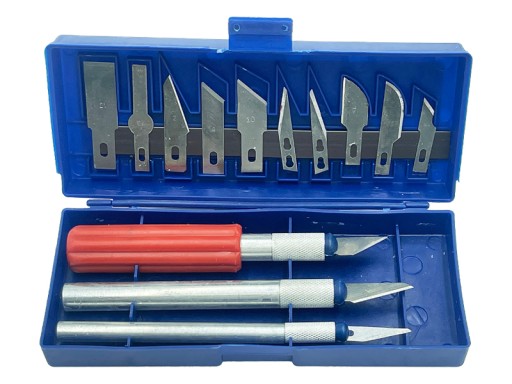 Zestaw składa się z 3 rękojeści i 13 wymiennych ostrzy o różnych kształtach i przeznaczeniu. Dzięki temu zestaw można z powodzeniem wykorzystać w różnych pracach precyzyjnych i modelarstwie. Wysoka jakość wykonania zestawu pozwala na przyjemną i efektywną pracę.