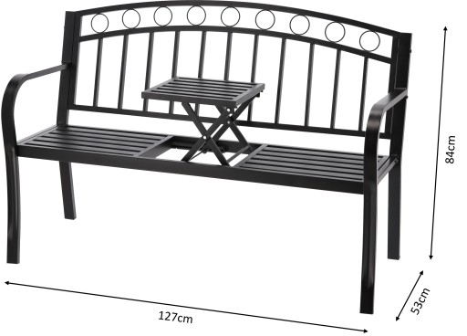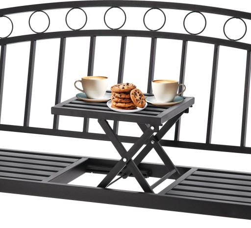 САДОВАЯ СКАМЬЯ НА ТЕРРАСЕ, ЧЕРНЫЙ МЕТАЛЛ, С РАСШИРЯЕМЫМ СТОЛОМ
