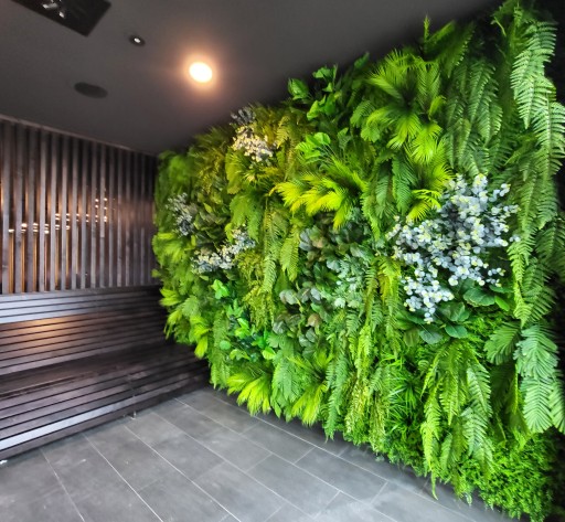 mata ze sztuczną zielenią na ściany imitująca naturalną roślinność.