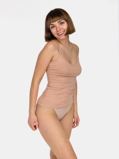 BLUZKA DAMSKA NA RAMIĄCZKACH KOSZULKA TOP GŁADKA BAWEŁNIANA BASIC BEŻOWA M