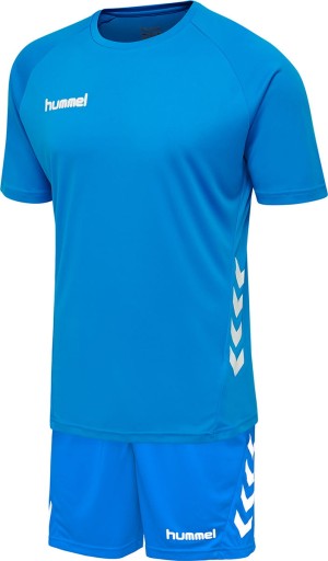 Zestaw hmlPROMO SET jest idealny do piłki nożnej, piłki ręcznej lub innych zajęć sportowych. Zestaw składa się z koszulki oraz spodenek w jednakowym kolorze. Koszulka ma krótkie, raglanowe rękawy zapewniające dodatkową swobodę ruchów, a spodenki sznurek w pasie do odpowiedniego dopasowania.