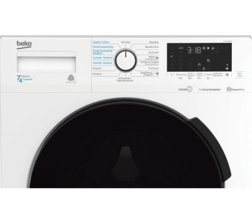 - Dodatkowe opcje: dodatkowe płukanie, HomeWhiz - zdalne sterowanie, program "czyszczenie bębna", silnik Inverter, Steam Cure