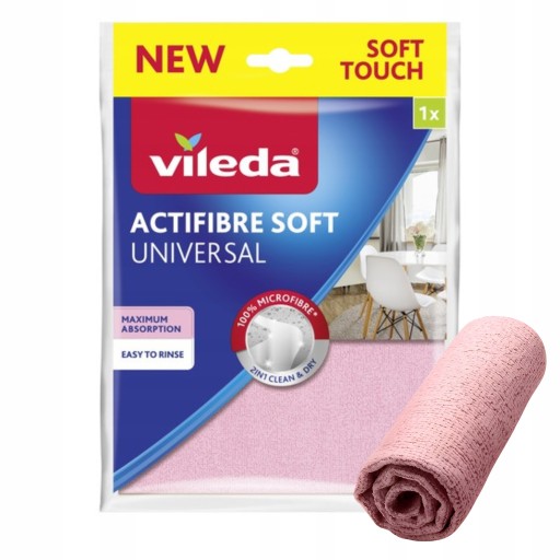 VILEDA ACTIFIBRE МЯГКАЯ ТКАНЬ РОЗОВАЯ УНИВЕРСАЛЬНАЯ БЕЗ МОЮЩИХ СРЕДСТВ