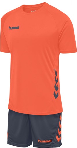Zestaw hmlPROMO DUO SET jest idealny do piłki nożnej, piłki ręcznej lub innych zajęć sportowych. Zestaw składa się z koszulki oraz spodenek w kontrastowym kolorze. Koszulka ma krótkie, raglanowe rękawy zapewniające dodatkową swobodę ruchów, a spodenki sznurek w pasie do odpowiedniego dopasowania.