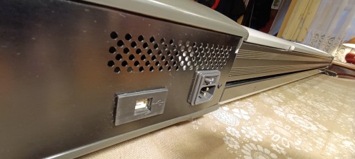 Stan wizualny bardzo dobry minus. Normalne ślady użytkowania. Gdzie nie gdzie na bocznych plastikach malutkie ryski i otarcia. Pulpit roboczy z blachy aluminiowej w stanie bardzo dobrym. Brak podstawy na której stoi skaner, ale pod spodem znajdują się cztery nóżki gumowe więc skaner może być użytkowany bez podstawy, stojąc na jakimś blacie.