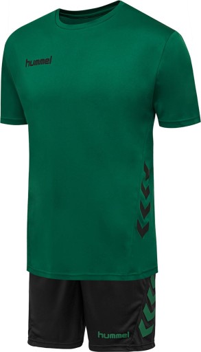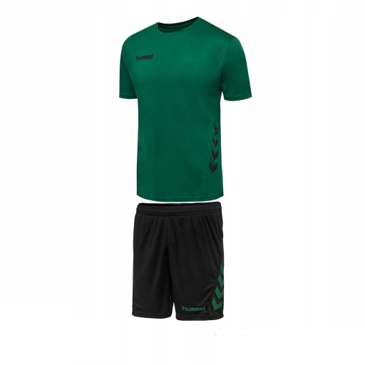 Zestaw hmlPROMO DUO SET jest idealny do piłki nożnej, piłki ręcznej lub innych zajęć sportowych. Zestaw składa się z koszulki oraz spodenek w kontrastowym kolorze. Koszulka ma krótkie, raglanowe rękawy zapewniające dodatkową swobodę ruchów, a spodenki sznurek w pasie do odpowiedniego dopasowania.