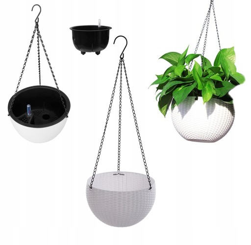 Doniczka wisząca zachwyca oryginalnym designem i nowoczesną fakturą - wykończenie powierzchni doniczki to imitacja splotu wikliny. Produkt sprawdzi się zarówno wewnątrz, jak i na tarasie czy balkonie - jest odporny na promienie UVA i UVB. Oprócz tego jest bardzo lekki - waży niecały kilogram.