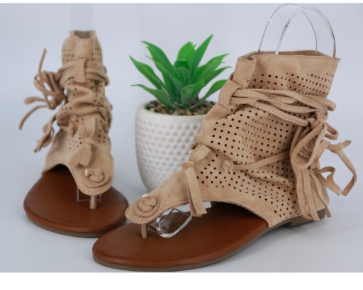 SANDAŁY RZYMIANKI ZAMSZOWE DAMSKIE GLADIATORKI BEŻOWE WIOSENNE BUTY 39