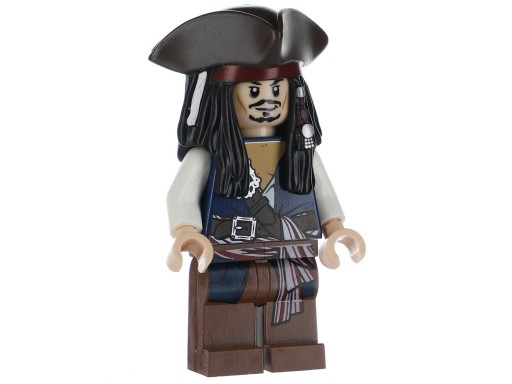 Zestaw zawiera 4 elementy, aby skonstruować unikatowy model minifigurki kapitana Jacka Sparrowa, bohatera filmów z serii „Piraci z Karaibów”.