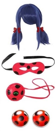 - Przebranie składa się z peruki, maski na oczy, jojo na pasku i klipsami