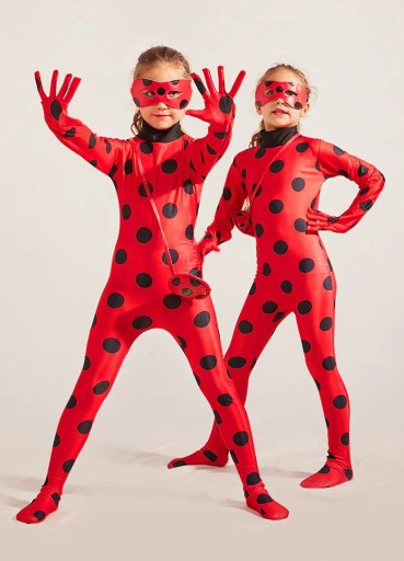 STRÓJ KOSTIUM PRZEBRANIE BIEDRONKI W ZESTAWIE Z MASKĄ PERUKĄ JOJO KLIPSY S 110/ 116 BAL KARNAWAŁ