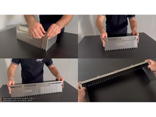 - Narzędzie posiada regulację szerokości nakładanej warstwy kleju od 344 mm do 600 mm