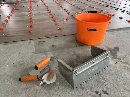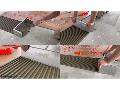 - Dozownik TYTANX pozwala na dopasowanie ilości oraz szerokości warstwy kleju do płytki