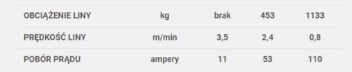 Szybkość zwijania liny i pobór prądu (pierwsza warstwa liny na bębnie)