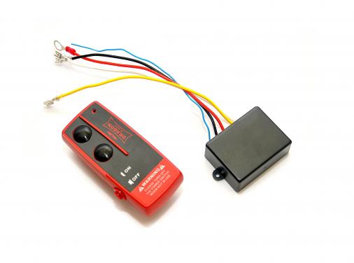 Ergonomicznie zaprojektowany pilot bezprzewodowy zasięgiem do 40 metrów, wyposażony w przełącznik on/off oraz otwór na smycz, działający na baterii A23. Komplet zawiera również sterownik kołyskowy, który jest instalowany przy pomocy uchwytu i połączony przewodami.