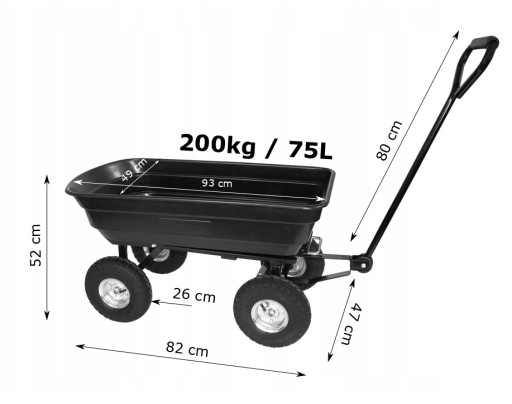 Praktyczny wózek ogrodowy do przewożenia sypkich ładunków. Wykonany z materiałów najwyższej jakości.