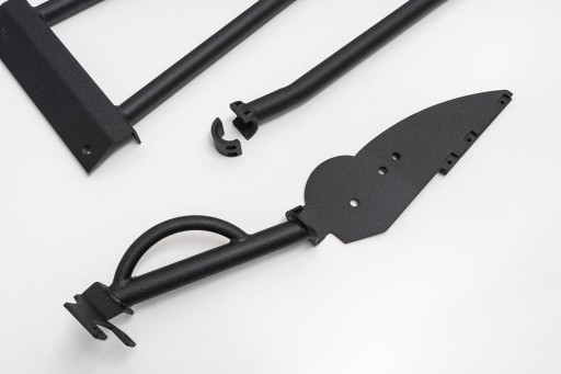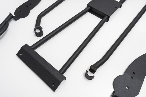 Klatkę montuje się do pałąków fabrycznego SOFT TOPu, dzięki rurowym uchwytom drążków. Produkt wykonano ze stali walcowanej na zimno i rur. Wszystko zabezpieczono w dwustopniowym procesie malowania proszkowego, używając epoksydowej wstępnej powłoki co stworzyło solidną, czarną strukturę "TIGER textured".