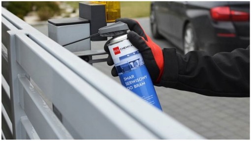 ⭕ smaruje i zabezpiecza ruchome części bram – zawiasy, sworznie, sprężyny amortyzujące, elementy siłownika