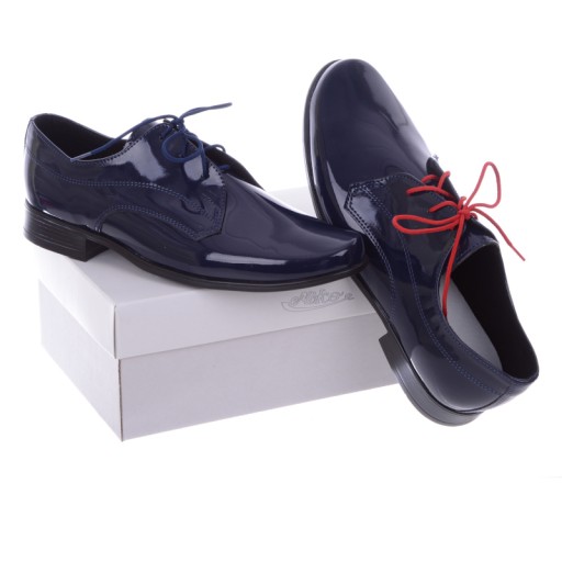 Eleganckie Obuwie Chłopięce Komunijne Wiązane Wizytowe Granatowe 015 - 37 MIKO 11842