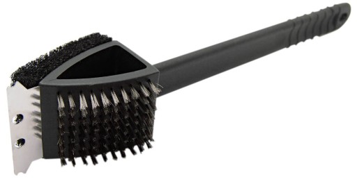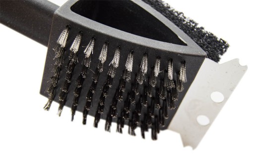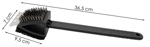 SZCZOTKA DO GRILLA, 3 W 1, SKROBAK, SZCZOTKA ZE STALI NIERDZEWNEJ, CZARNA SZCZOTKA Z PP, CZARNA RĄCZKA Z PP, DŁUGOŚĆ CAŁKOWITA 37 CM, 80 PĘCZKÓW WŁOSIA ZE STALI NIERDZEWNEJ, WAGA 150 G,