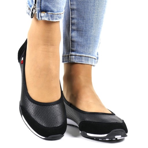 SKÓRZANE AŻUROWE BALERINY WIOSENNO LETNIE CZARNE LEKKIE