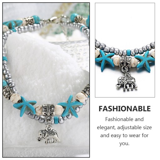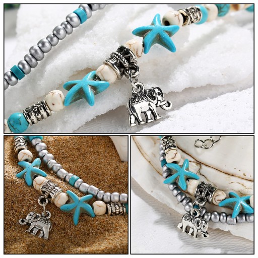 ✅ Ryba rozgwiazda, materiał z koralików ryżowych, podwójna bransoletka do jogi, zawieszka na kostkę ze słoniem plażowym.