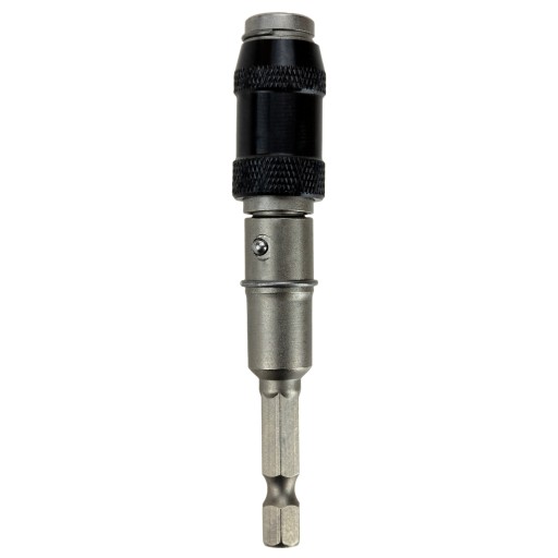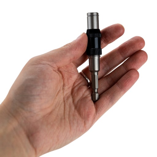 Adapter jest wyposażony w mocowanie typu HEX 1/4", co oznacza, że pasuje do standardowych bitów. Zakończony uchwytem 1/4’’ sprawia, że może być używany we wkrętarkach, wkrętarko-wiertarkach i wiertarkach. Główną cechą wyróżniającą go jest ruchoma głowica, która umożliwia obrót pod różnymi kątami do 20°. Dzięki temu można swobodnie manewrować bitami nawet w miejscach o ograniczonej przestrzeni. To szczególnie przydatne przy montażu mebli, instalacji elektrycznych czy pracach konserwacyjnych. Adapter jest wyposażony w magnes, który gwarantuje pewne trzymanie bitów. Ponadto, adapter jest wykonany z wytrzymałej stali węglowej C45, co zapewnia jego trwałość i niezawodność. Długość całkowita adaptera wynosi 89 mm, a jego średnica to 16 mm, co sprawia, że jest on kompaktowy i łatwy do przechowywania w torbie narzędziowej.