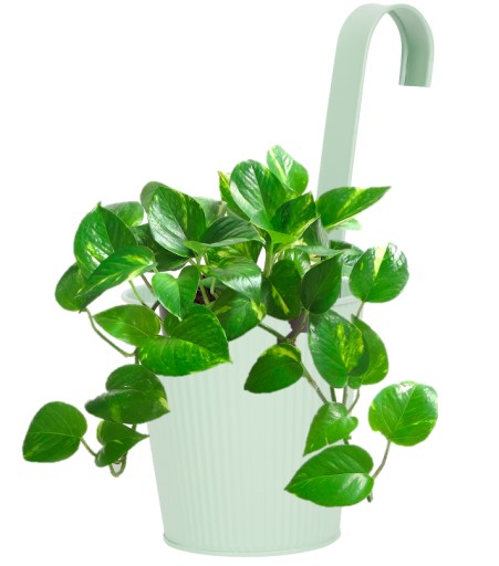 Doniczka - osłonka metalowa z hakiem umożliwiającym zawieszenie.