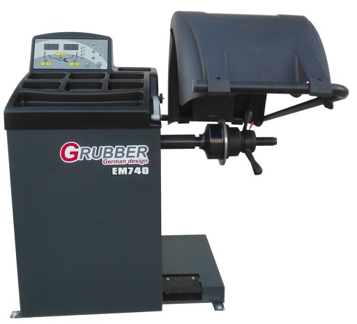 Wysokiej klasy, nowoczesna i profesjonalna wyważarka. AUTOMATYCZNA wyważarka GRUBBER EM740+ to najnowszy model niemieckiej firmy. Za pomocą wysięgnika z czytuje automatycznie dwa parametry (odległość koła od maszyny i szerokość felgi). Dzięki temu rozwiązaniu technologicznemu ułatwia i przyspiesza to umocowywania ciężarka (nabijanego lub klejonego) w odpowiednim miejscu. Staranność wykonania z wykorzystaniem materiałów najwyższej jakości w połączeniu z niezwykle dokładnym systemem czujników piezoelektrycznych, rejestrujący najmniejsze niewyważenia koła gwarantuje uzyskanie doskonale precyzyjnych i powtarzalnych odczytów za każdym razem. Dzięki jej automatyzacji w bardzo łatwy i prosty sposób wyważysz koła aluminiowe dzięki programowi ALU S - wyważanie felg aluminiowych z wysięgnika. Dane pomiarowe i parametry koła prezentowane są na czytelnym wyświetlaczu LED. Maszyna przeznaczona do wyważania kół samochodowych, dostawczych oraz motocyklowych przy pomocy dodatkowego adaptera.