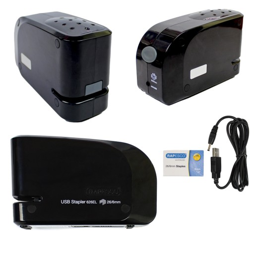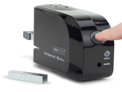 Automatyczny zszywacz Rapesco 626EL może być zasilany przez USB lub baterie, co umożliwia szybkie i wydajne zszywanie do 15 arkuszy papieru o gramaturze 80 g/m2. Zszywacz pół-pasmowy ma wytrzymałą konstrukcję z tworzywa ABS i mieści standardowe zszywki 26/6 mm. System ładowania z przodu ma łatwy dostęp za pomocą przycisku, z ukrytą głowicą zszywającą dla bezpieczeństwa i antypoślizgową gumową podstawą.
