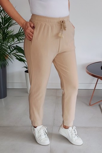 Spodnie dresowe damskie dostępne w pięknych kolorach, które doskonale podkreślają damską sylwetkę. Spodnie posiadają regulację w pasie sznurkiem oraz dwie kieszenie z przodu, w pasie szeroka gumka. Sportowego looku nadaje im prosty, fason z lekko zwężaną nogawką zakończoną ściągaczem. Produkt wykonano z miękkiej, elastycznej tkaniny. Spodnie mogą być uniwersalną bazą do zbudowania codziennych lub sportowych stylizacji.