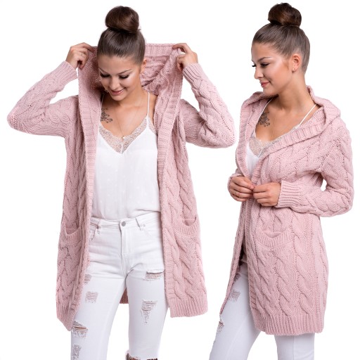 Piękny kardigan z warkoczowym splotem model Gloria to idealny sweter dla Ciebie. Przydatny w każdej sytuacji, pasujący do wielu stylizacji, Kardigan Gloria posiada kaptur oraz kieszenie z przodu, jest ciepły i przyjemny w dotyku. Może zastąpić kurtkę, płaszczyk w chłodne jesienne dni.