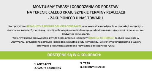 * Świadczymy kompleksową usługę zakupionych u nas systemów kompozytowych(tarasy,ogrodzenia,elewacje)