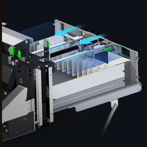Dzięki centralnemu wielopunktowemu prowadzeniu siodła unikamy przekosów spowodowanych "dobijaniem" papieru, co przekłada się na jakość cięcia i eliminuje ewentualne błędy w obróbce materiałów.