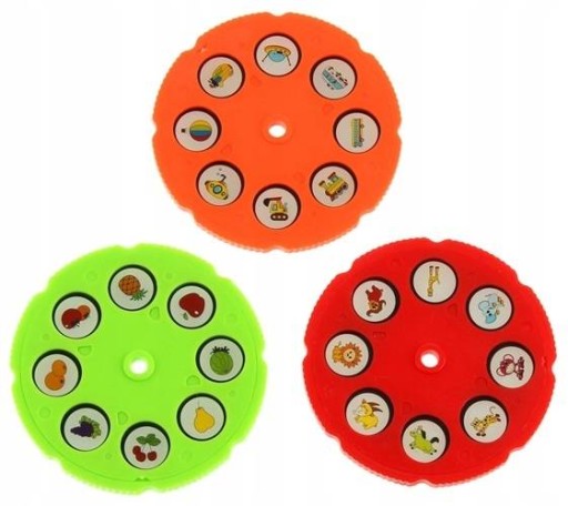 - 3 krążki z obrazkami do wyświetlania (8 obrazków na każdym krążku);