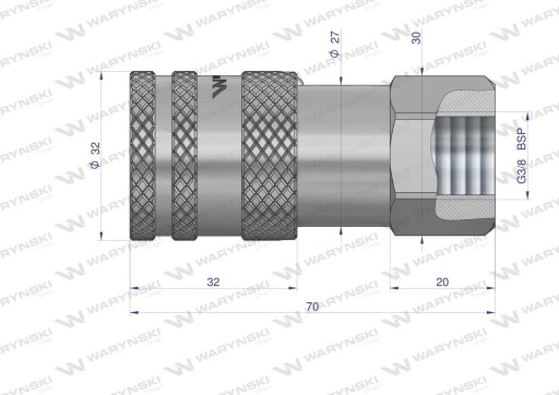 Szybkozłącze hydrauliczne suchoodcinające gniazdo G3/8"BSP gwint wewnętrzny ISO16028 Waryński - WIFR38MW