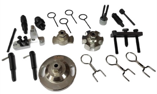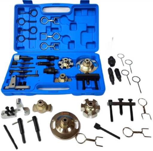Kompleksowy zestaw wymagany do prac serwisowych przy łańcuchach rozrządu, głowicach cylindrów, pompach HP i układach rozrządu silnika w silnikach wysokoprężnych.