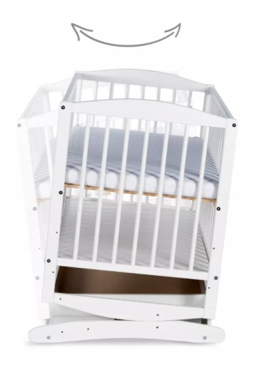 System opuszczanego boku: Znakomicie ułatwia on rodzicom wyjmowanie dziecka z łóżka. Wielokrotnie powtarzana czynność stanie się wygodniejsza dzięki obniżeniu boku łóżeczka. System kołysania: Usypianie dziecka poprzez kołysanie jest chyba najefektywniejszą metodą. Według zaleceń pediatrów powinno odbywać się ono w określonym kierunku, dlatego umożliwiamy regulację kołysania wzdłuż dwóch osi. Cichy i płynny mechanizm łożyskowy nie wymaga użycia dużej siły i nie obudzi dziecka. “Gryzaki” na boku łóżka: Wiemy dobrze jakie hobby ma ząbkujące dziecko i tego zachowania nie jesteśmy w stanie zmienić. Jedyne co możemy zrobić to dać rodzicom pewność, że łóżko przetrwa długie lata i będzie mogło służyć kolejnym pokoleniom. Szuflada: Największą zaletą fabrycznie dobranej szuflady jest jej spasowanie i wygodne użytkowanie. Nie sunie ona bezpośrednio po podłodze dlatego nie przeszkodzi jej nawet najgrubszy dywan w pokoju dziecięcym. Przykrywa szuflady zapobiega osiadaniu się kurzu i odgradza łóżeczko od przestrzeni do przechowywania. Drewno sosnowe wyselekcjonowane zostaje już na etapie cięcia w tartaku, dzięki czemu przyjeżdża do nas tylko oznaczone gatunkiem pierwszym. Kolejnym etapem selekcji zajmują się już nasi zaufani ludzie zatrudnieni na stanowisku technologów drewna, którzy bardzo rygorystycznie wybierają idealne elementy do stworzenia barierki ochronnej, dna i boku łóżeczka. Bok łóżka: Wykonany w 100% z drewna sosnowego pochodzącego z polskich lasów.