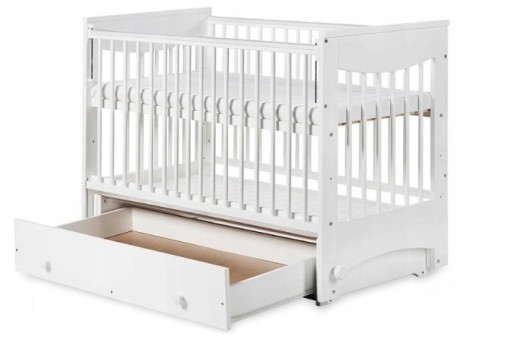 KLUPŚ Łóżeczko LUNA opuszczany bok z szufladą kołyska białe 120x60