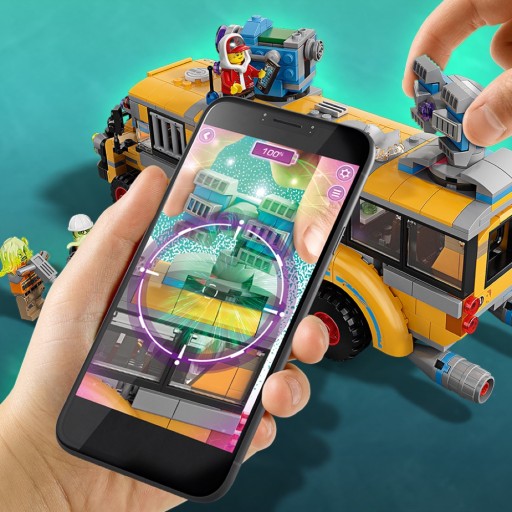 - Pobierz aplikację LEGO Hidden Side i skieruj swój telefon na model z zestawu Autobus Duchozwalczacz 3000, by go ożywić. Poruszając telefonem, zobaczysz, że otoczenie wokół modelu nieustannie się zmienia.