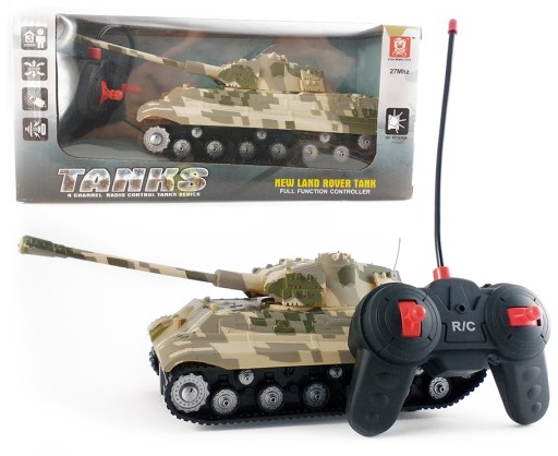 Zdalnie sterowany czołg na baterie Tanks to fantastyczny wojskowy pojazd, który bez trudu sprosta każdemu zadaniu, jakie postawi przed nim mały miłośnik militariów. Sterowanie za pomocą pilota R/C pozwala na jazdę w nierównym terenie, pokonywanie torów przeszkód i wiele innych wyzwań, które przyjdą do głowy maluchowi. Nieustraszony czołg Tanks będzie jego towarzyszem w trakcie wielu przygód. Zabawka została wykonana z dbałością o szczegóły, posiada ruchome gąsienice i obrotową wieżę. Po naciśnięciu przycisku aktywowane są sygnały dźwiękowe i świetlne.
