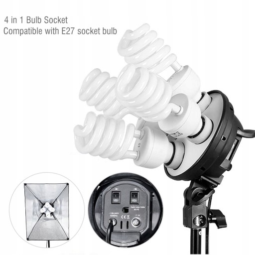 45 W profesjonalne żarówki oświetleniowe, odpowiednie dla każdego uchwytu światła z gniazdem E27. 4 W 1 Gniazdo żarówki umożliwia zainstalowanie 4 żarówek w tylko jeden gniazdo, 2 przełączniki sterujące umożliwiają tworzenie różnych jasności.